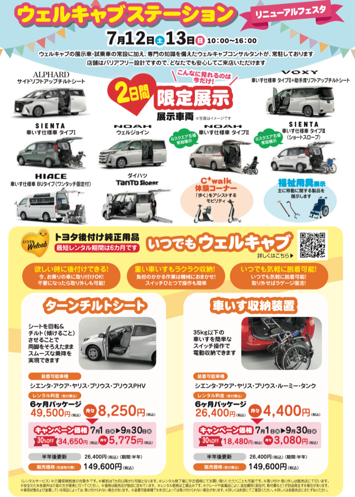 🎁7/1から9/30まで、ウェルキャブ車の無料レンタル体験キャンペーン実施中!